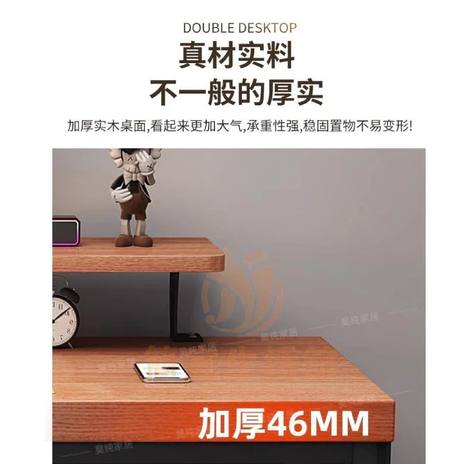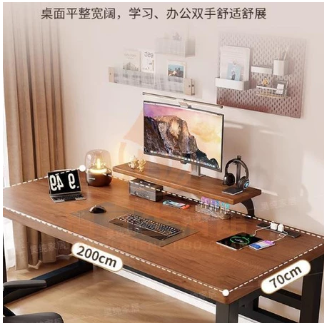 卧室簡易長辦公桌 實木電腦桌 電腦桌帶增高架
