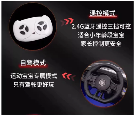 瑪莎拉蒂兒童電動超跑可自駕可家長控制多功能童車